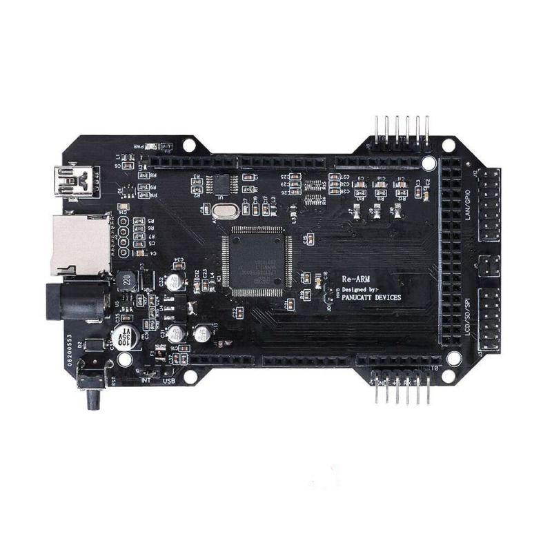RE-ARM is a 100Mhz, 32-bit ARM controller with the popular Arduino MEGA footprint. It’s a plug-in replacement for the Arduino Mega in your RAMPS setup for a quick and easy upgrade to 32-bit goodness.