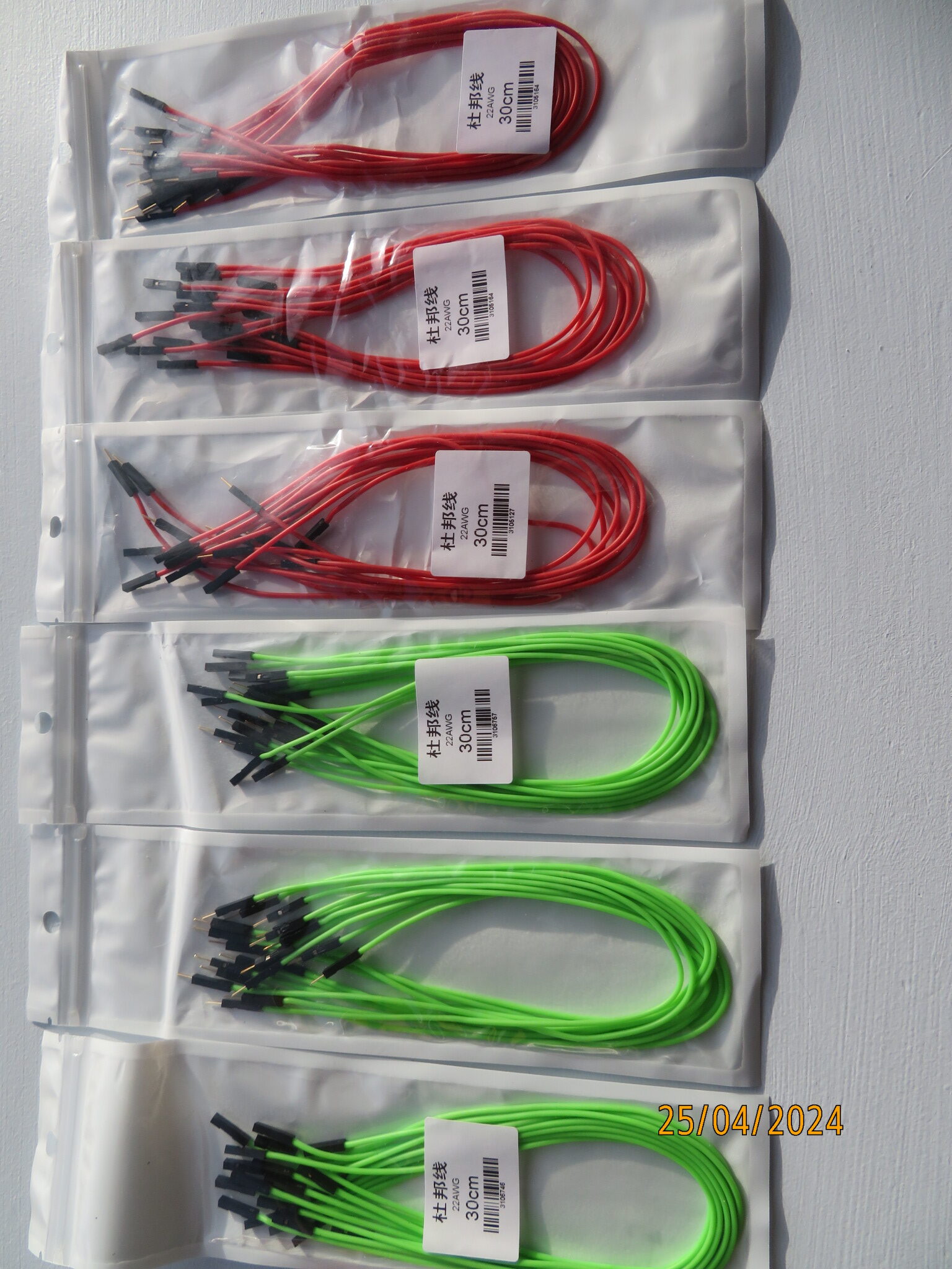 1 kjøp = 6 STK / 3 ulike: F-F F-M M-M alle er 30cm og 22AWG som er langt bedre enn alt annet til Arduino du kan kjøpe. Farge; RØD og LightGreen Flourescent.