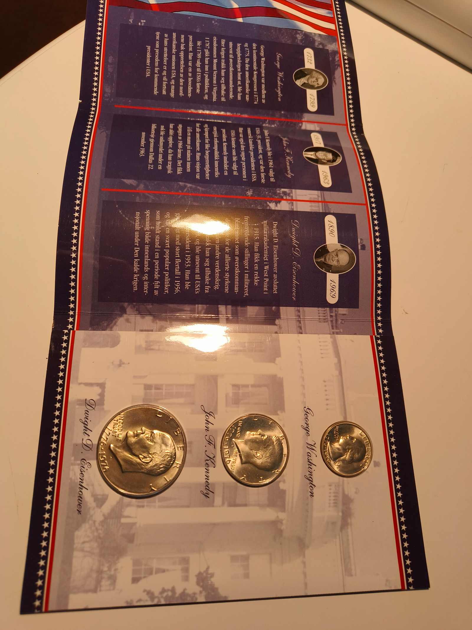 Inneholder 1 dollar 1/2 dollar og 1/4 dollar