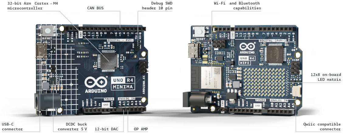 UNO R4 is launched in two versions, a simpler variant (Minima) for all projects based on previous UNO models but needing a bit more computational power and memory, and a variant with extended functionality (WIFI) for more advanced projects.