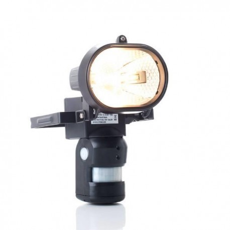 Bevegelsesaktivert lyskaster med overvåkningskamera som tar stillbilder og video – markedsledende! Her har du en lyskaster med overvåkningskamera og bevegelsessensor som automatisk tar bilder eller film av ubudne gjester eller lignende direkte på SD-minnekortet. Den kan brukes både ute og inne. Så fort den innebygde bevegelsessensoren registrer bevegelse tenner lampen og kameraet starter opptak. Tid og dato lagres automatisk på opptaket og du kan enkelt velge lengde på opptaket. Overvåkningskameraet krever strømtilførsel (230 V). Du kan benytte en skjøteledning eller strekke kabel til nærmeste strømuttak hvis nødvendig. Ønsker du ikke bruke kamerafunksjonen kan også dette produktet også brukes som en vanlig lyskaster med bevegelsessensor. Spesifikasjoner: Halogenlampe, 120 W Aluminiumslampehode Plastkonstruksjon Sensor: 160 grader, 10 meter Opptak: 640 x 480 SD/SDHC-kort: opptil 64 GB (ikke inkludert) Kameraet innstilles automatisk Opptaksformat: JPEG Automatisk lagring av tid og dato Tidsjustering fra 30 sek – 7 min Leveres med engelsk bruksanvisning