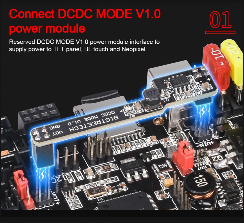 Reserved DCDC MODE V1.0 power module interface to supply power to TFT panel,BL touch and Neopixel