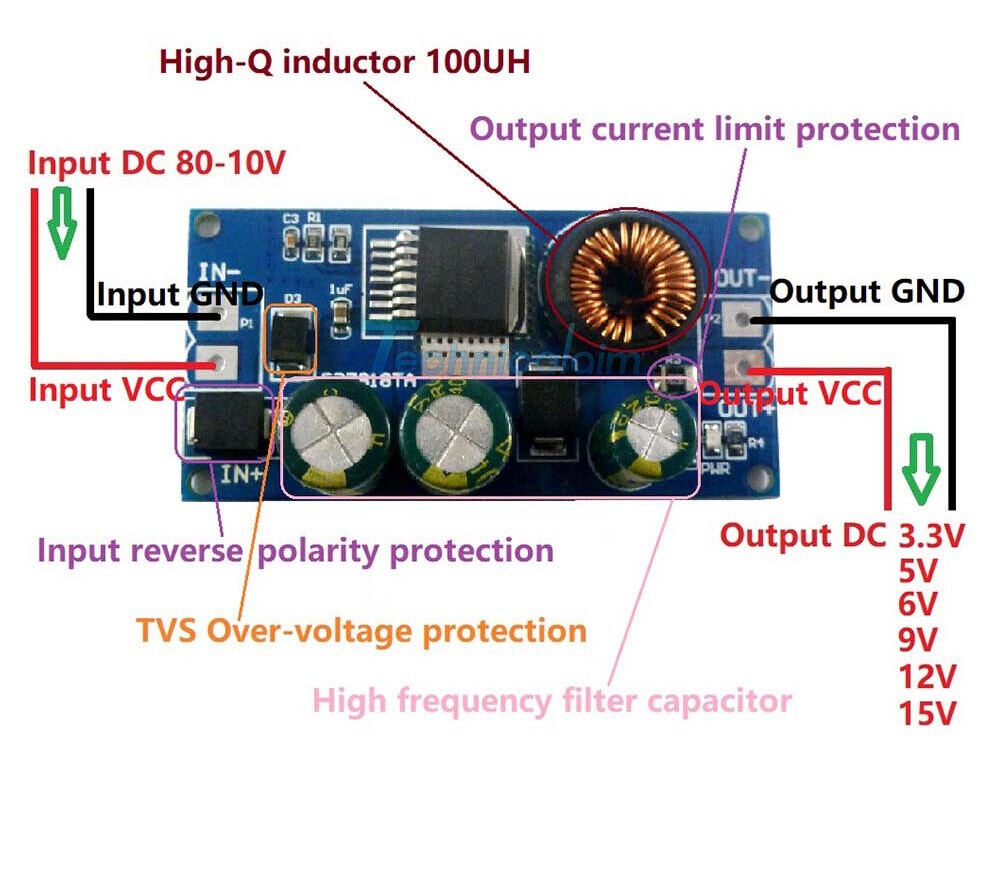 Converter Buck Step-Down Regulator Module DC8-80V to 9V