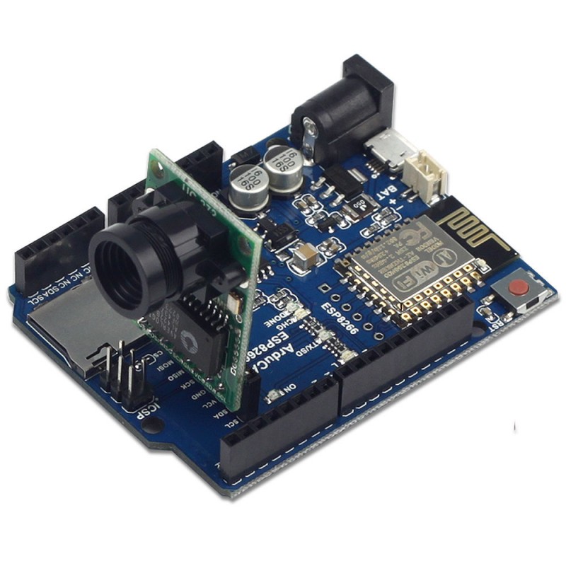 Features: Build in ESP8266-12E Module 11 digital input/output pins, IO ports are 3.3V tolerant 1 analog input(3.2V max input) ArduCAM Mini 2MP/5MP camera interface Lithium battery recharging 3.7V/500mA max Building in SD/TF card socket 7-12V power jack input Build in micro USB-Serial interface Compatible with Arduino IDE