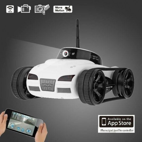 Fjernstyrt i-spy tank for iPhone iPad styring Sanntids video-overføring streaming av opptak eller foto taking. Ca. 20 min. opptak WiFi kontroll Trådløs styring 4-kanals Rekkevidde ca 30m. 6 stk vanlige AA batterier ikke inkl. Gratis App: iSpy Toys Produktet er lagret mange år kan være utdatert eller feil oppstått. Ikke aktuellt å åpne esker og teste.