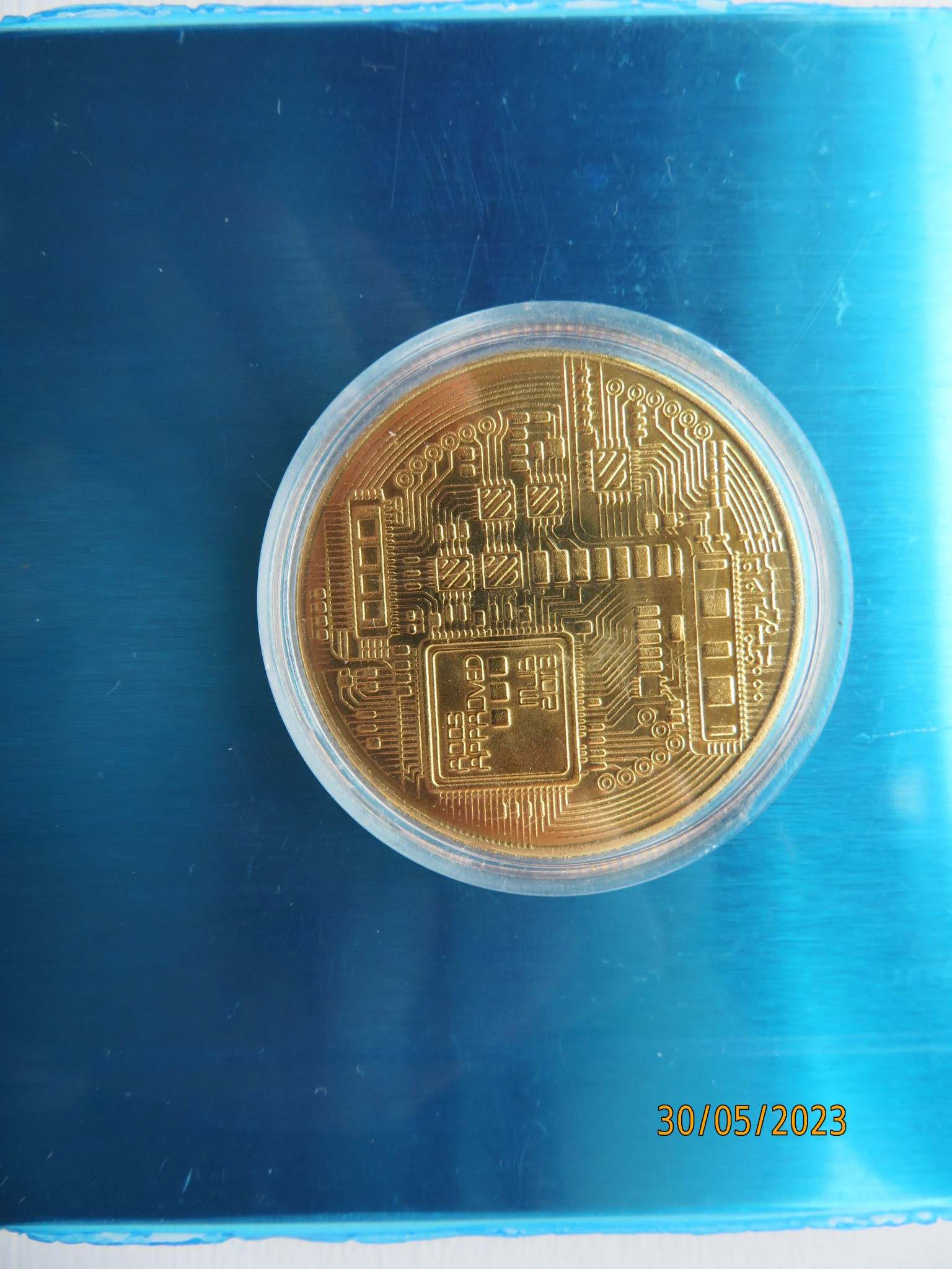 Den er av jern, ikke mulig å betale krypto med mynter forøvrig.