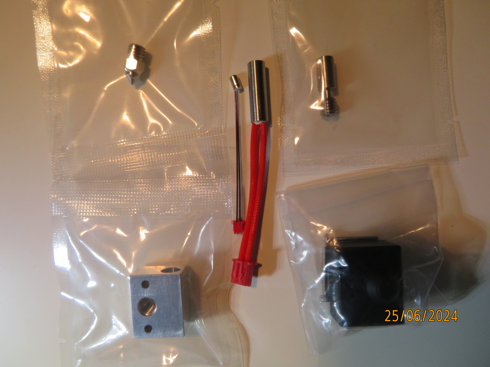 Original Creality Sprite Extruder 300 grader all-metal Hotend Kit for Ender-3 S1 Pro/ CR-10 Smart Pro/Sermoon V1 & V1 Pro. Plated chrome Copper 0.4mm nozzle. Titanium Alloy Throat Tube. Aluminum alloy heating block. Silicone sock. Cartridge Heater 24V 40-50W. Thermistor, thermal sensitivity: ntc100 φ three × 51mm maximum temperature 300 ℃