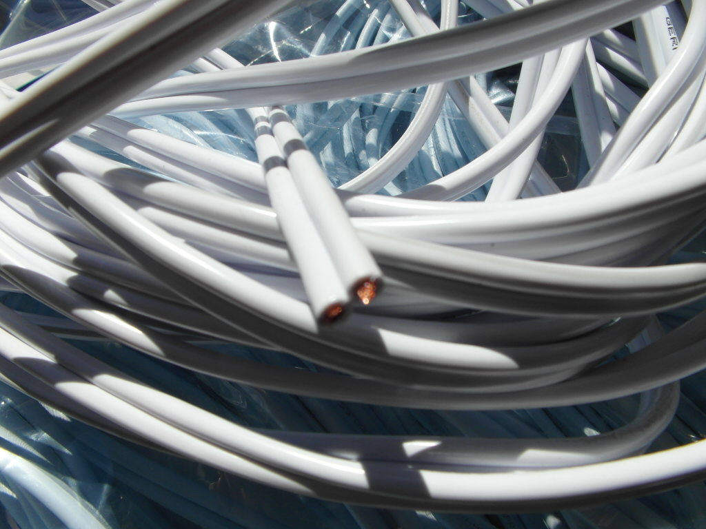 Hvit høyttaler kabel, 2-leder kabel, 15 meter