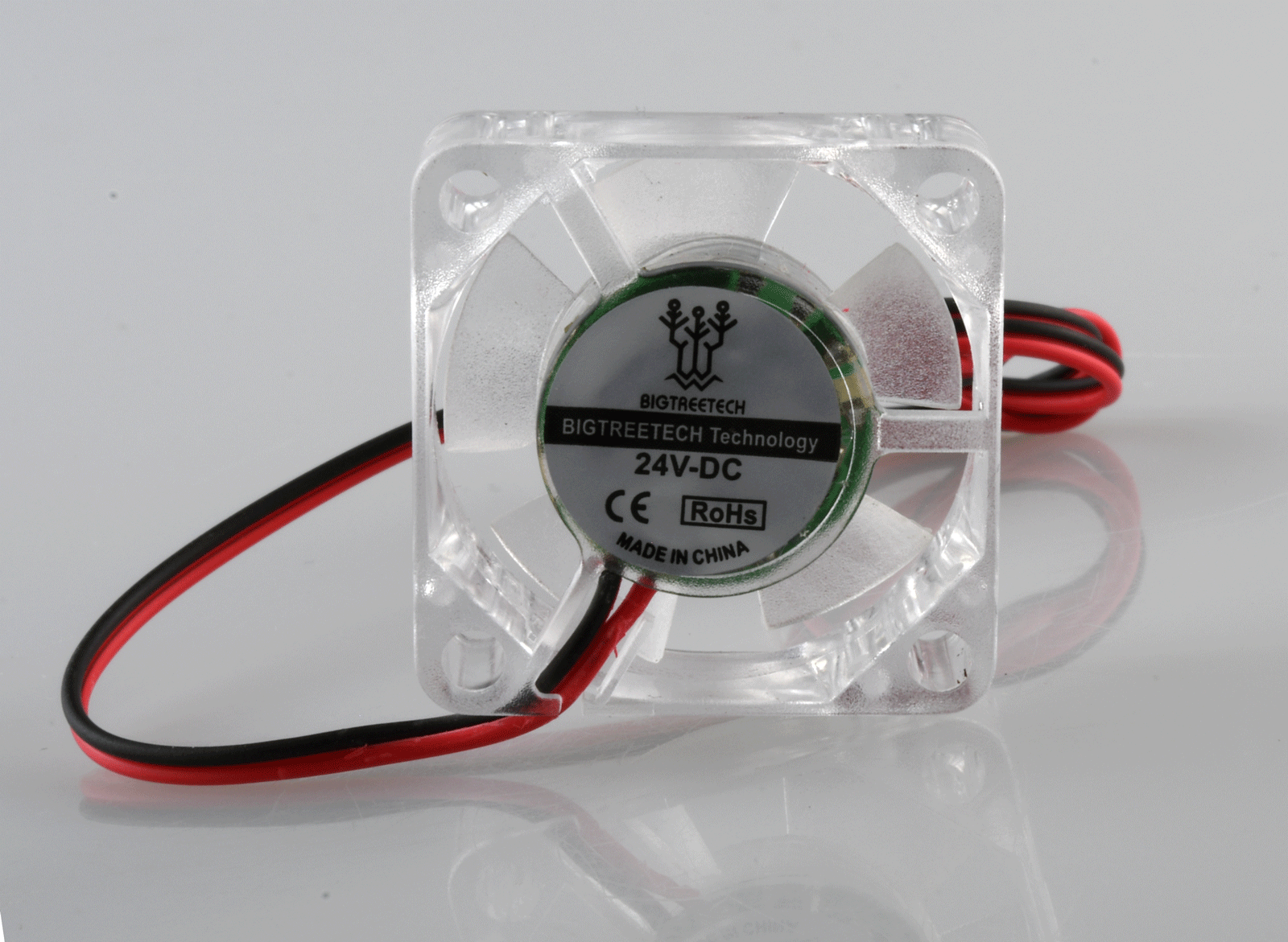 3010 24v 2-pin 3ocm cable Noize 20-25dB Blue light Hydreulic bearing fan up to 4.0 CFM blow. 3010 fan, 24V, 30CM cable length, XH2.54 terminal, with light, transparent color