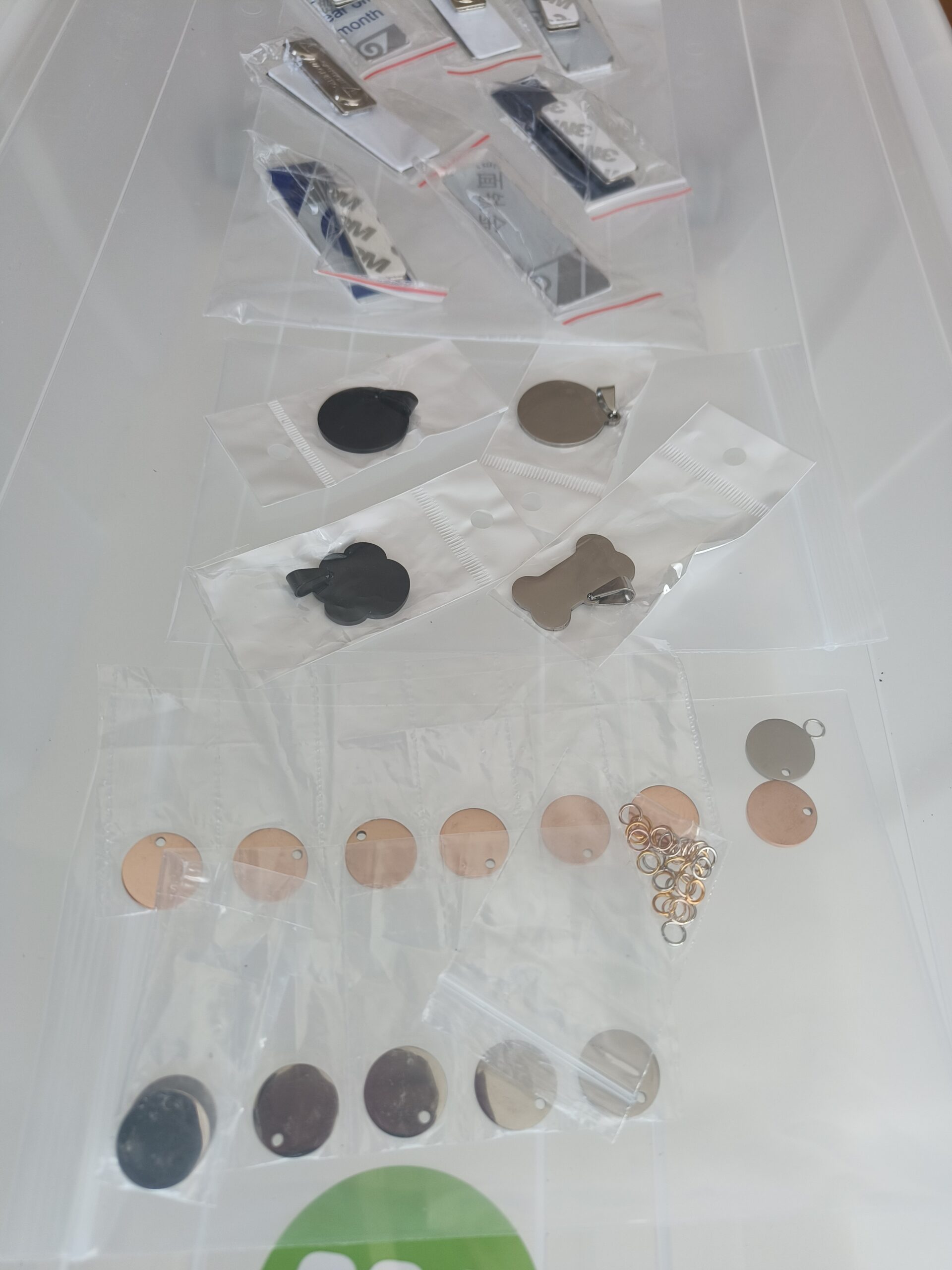 Pakke med 24 metall ting som hals smykker til laser gravering