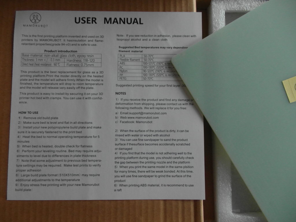 Polypropylene blanding med glassfiber, gjør den solid og uknuselig, denne er 245 x 255 mm spesial mål for CR-6 SE. Slipper tak med en gang flaten blir nedkjølt til romtemperatur.