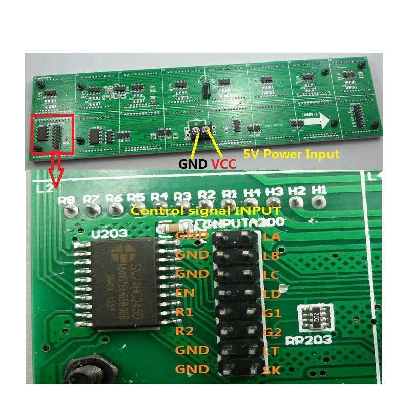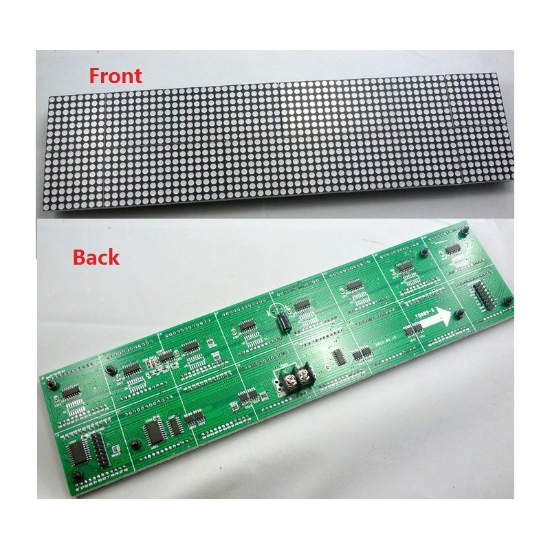 F3.75 Single Color 64 X 16 matrix displays Red pixels Driver IC : 74HC245 74HC595 74HC138 74HC04 APM4953 Can display variety of patterns and characters Provided arduino code Size: 304MM x 76MM Weight: About 300g