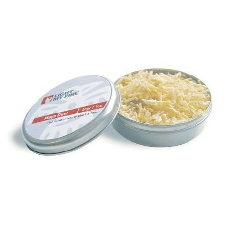 MayaDust is shavings from MayaSticks packed in a convenient waterproof container that is easy to carry in your pocket or backpack. Gives maximum heat energy for minimal weight. Use MayaDust together with the Swedish FireSteel to light your campfire with ease. From the heart of the ancient Mayan Empire, Maya Dust is made from the «Pino de Ocote», a fatwood pine cultivated in the highlands of Guatemala and Mexico. With an 80% resin content it is easy to light and produces an extremely hot flame.