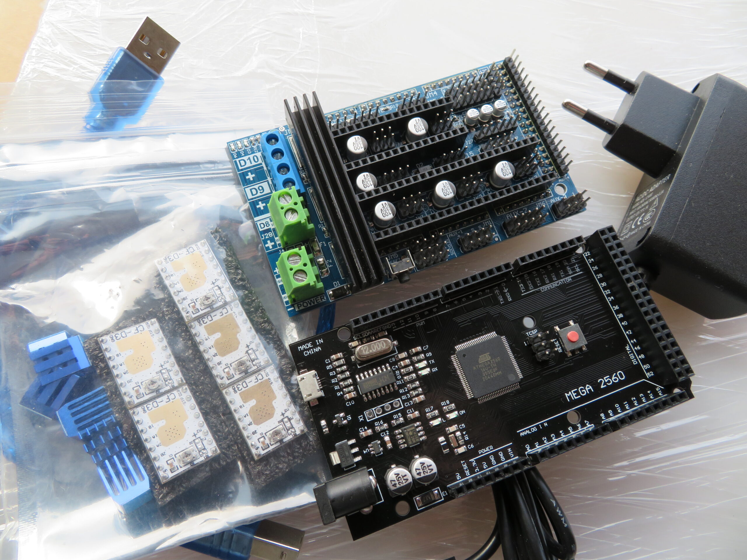 Tenstar robot black edition Mega 2560 R3 med Bigtreetech sin ramps 1.6 og 5 hvite A4988 som pakke 450,- Får med USB A-B og 1A DC 12V strømadapter