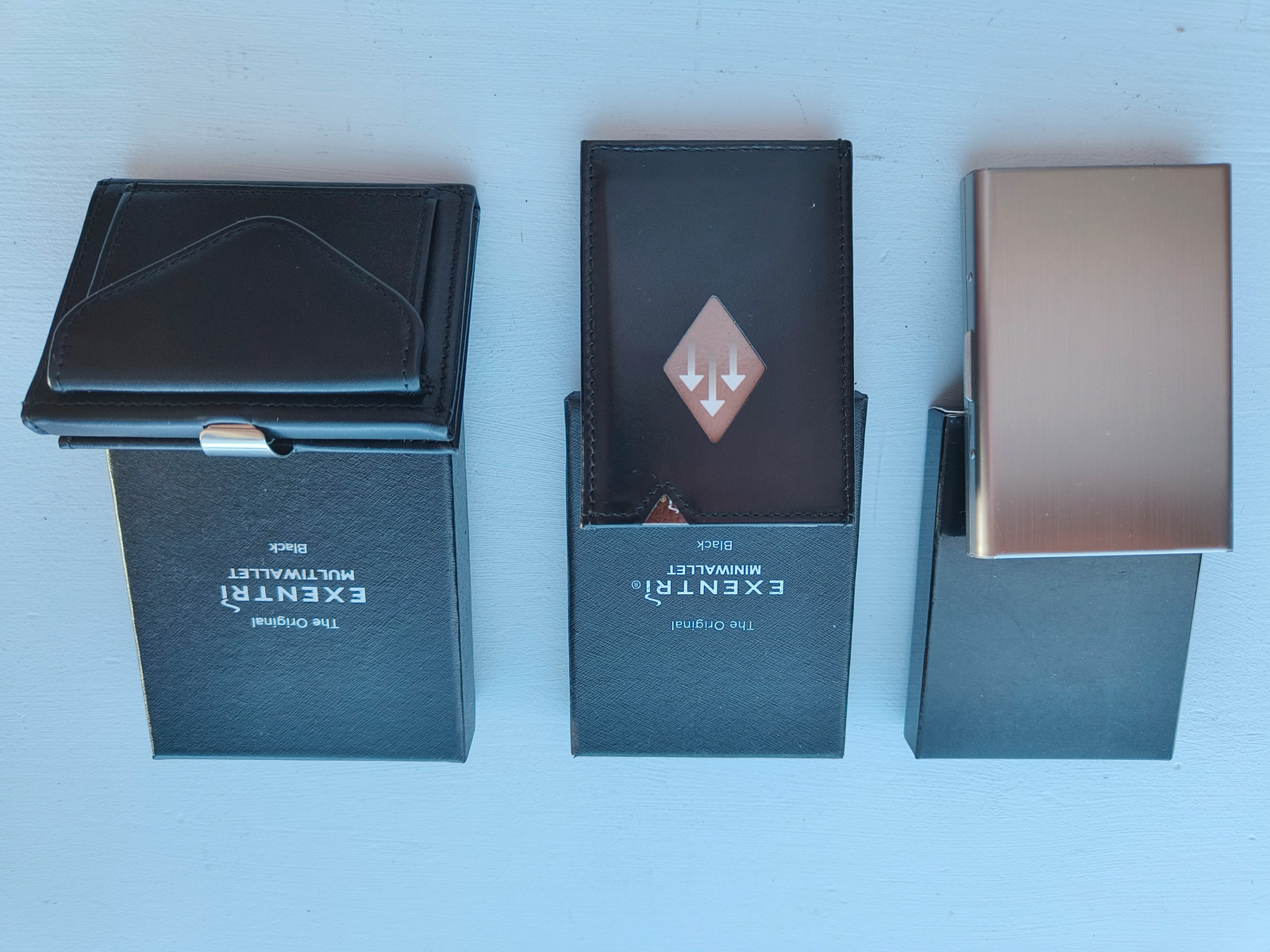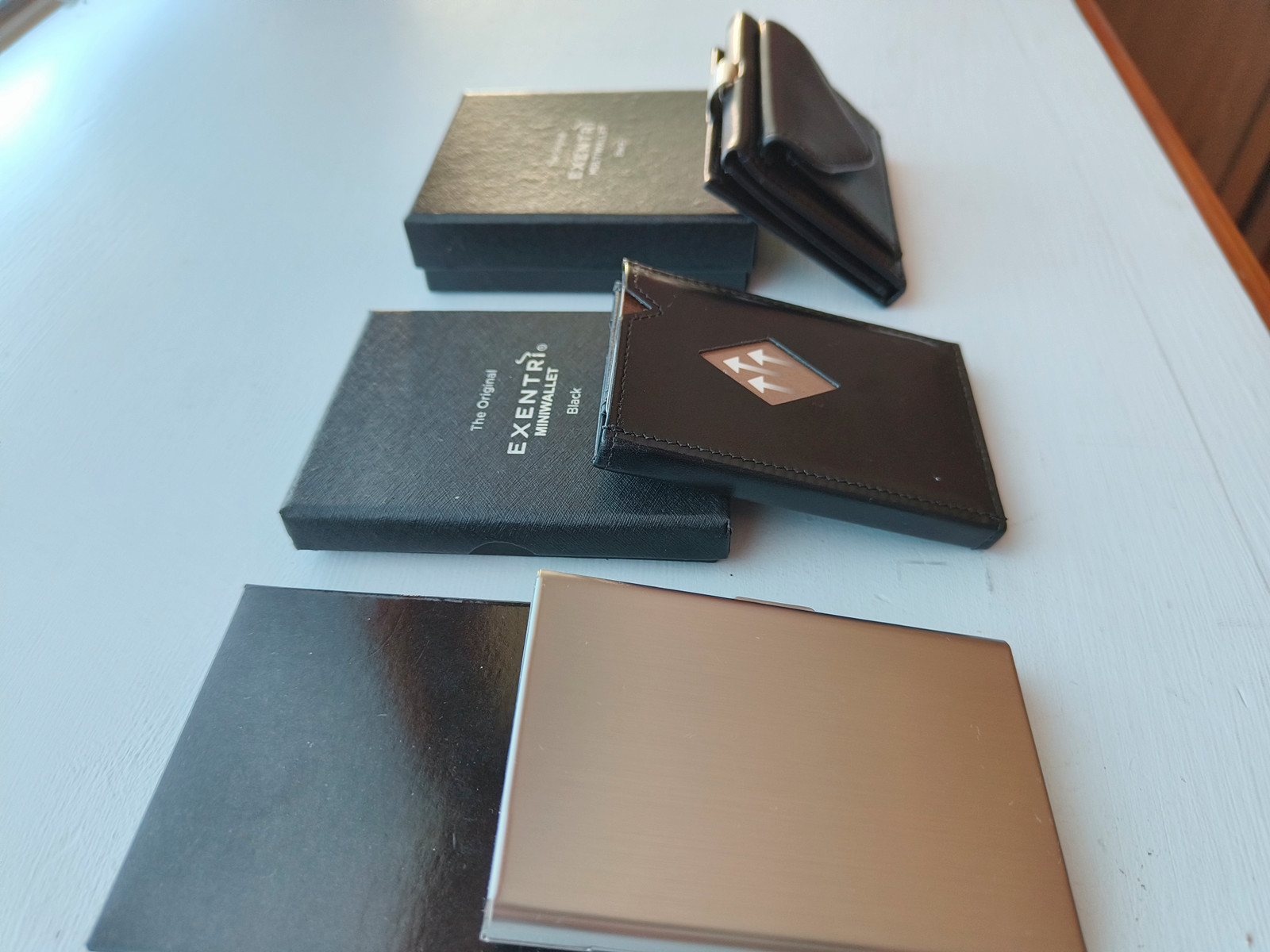 Aluminium kortholder 199,-, åpnes lettt med ett trykk på knapp. Plass til 6 kort.