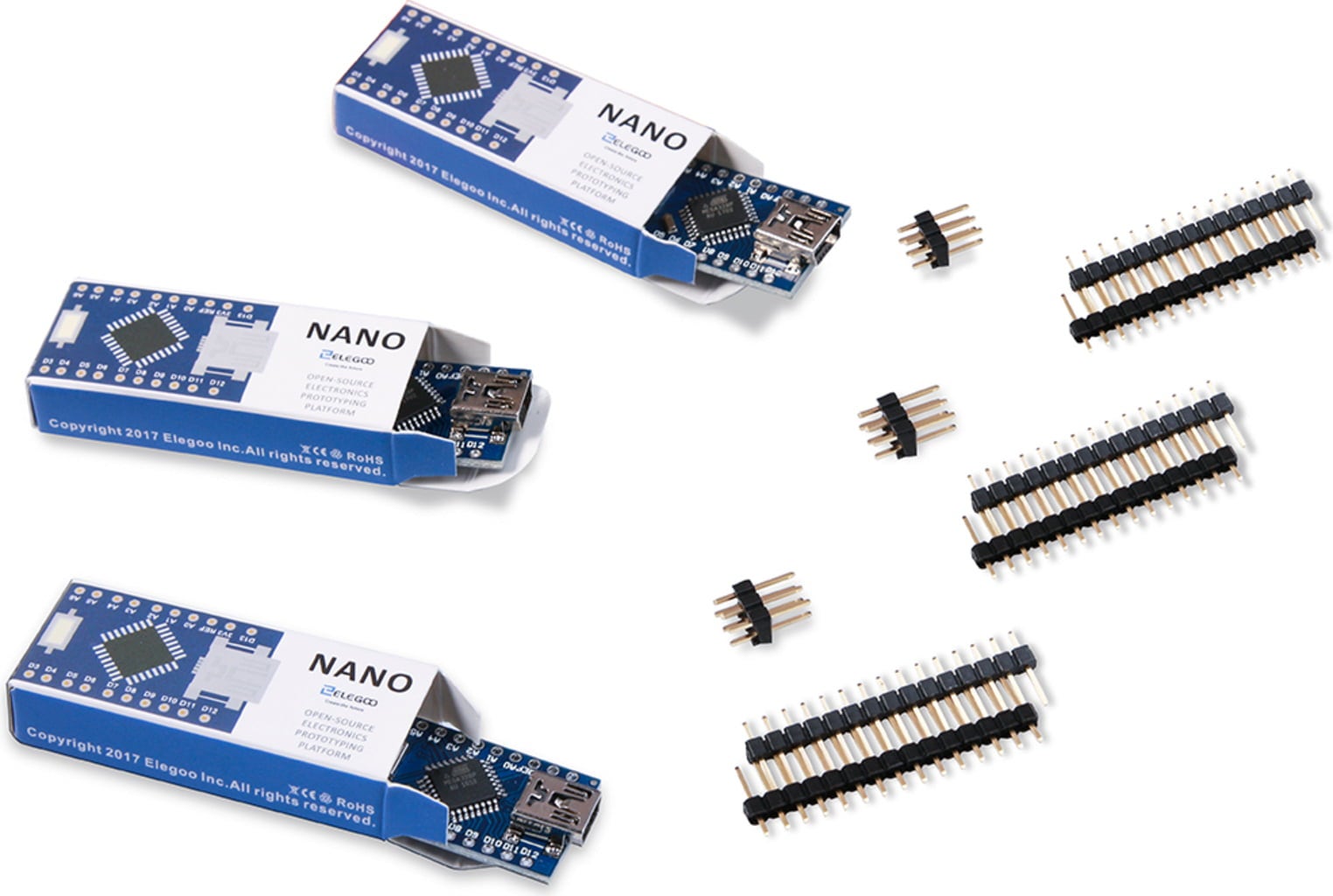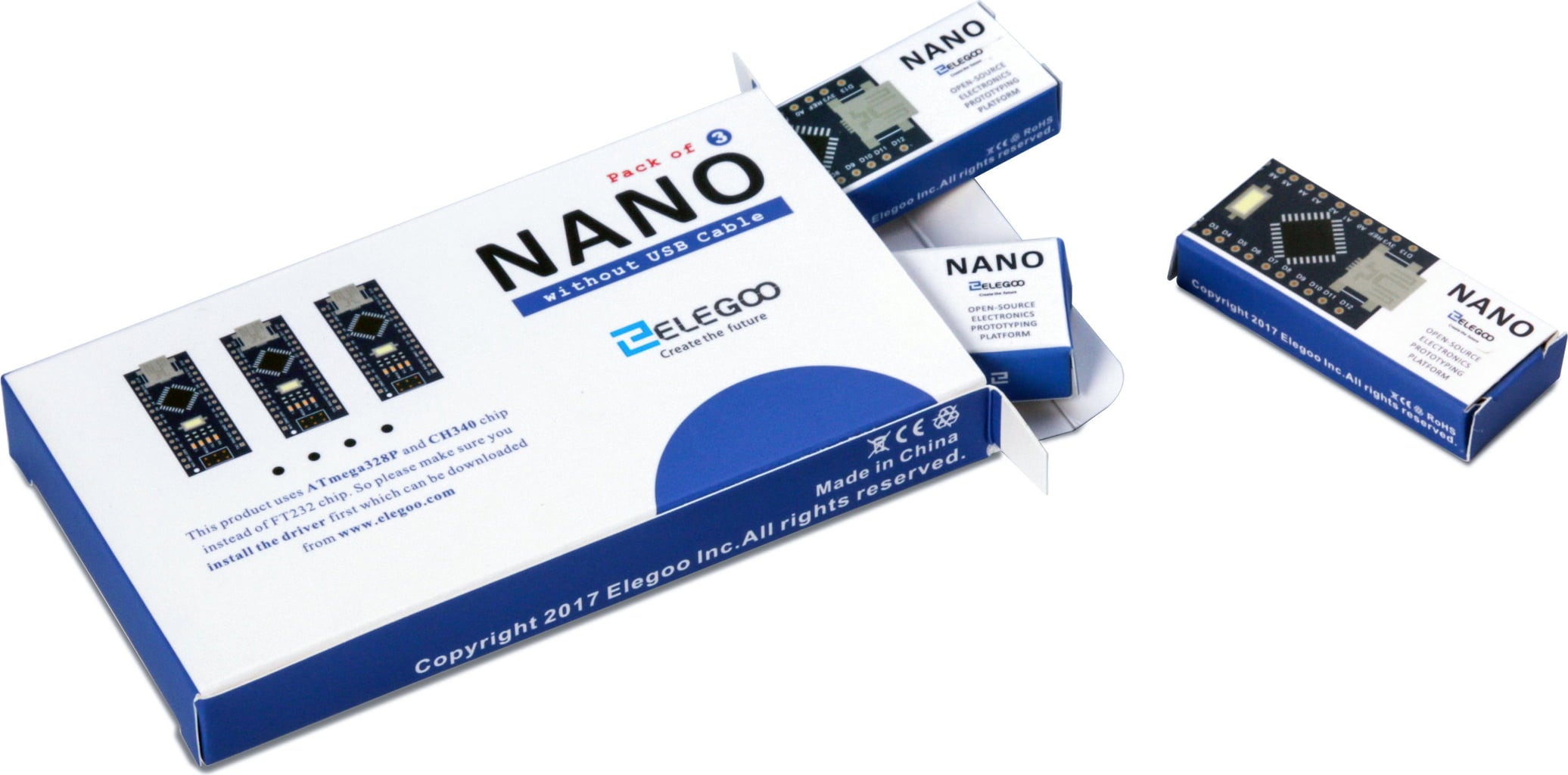 Leveransen inkluderer 3 Elegoo Nano-kort (uten USB-kabel).
