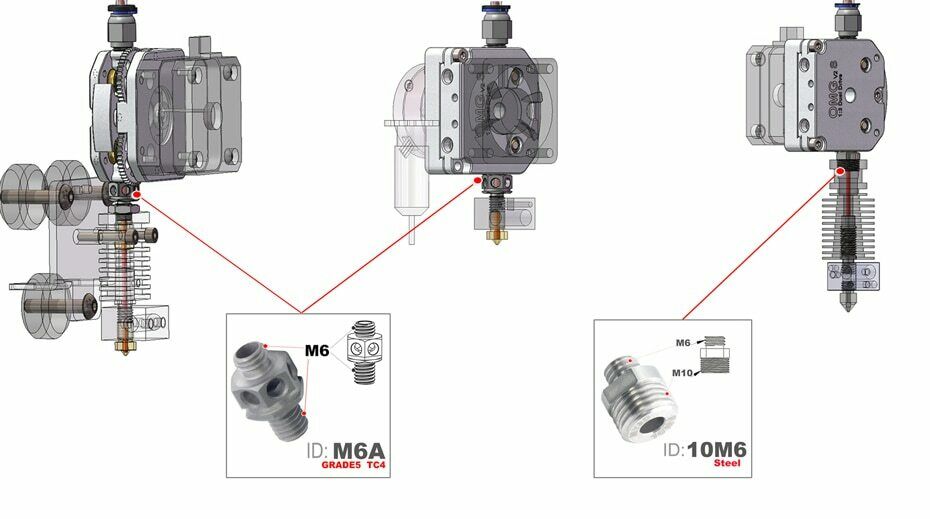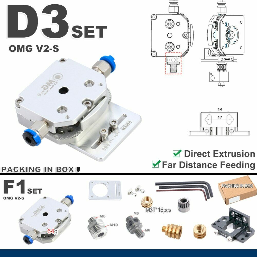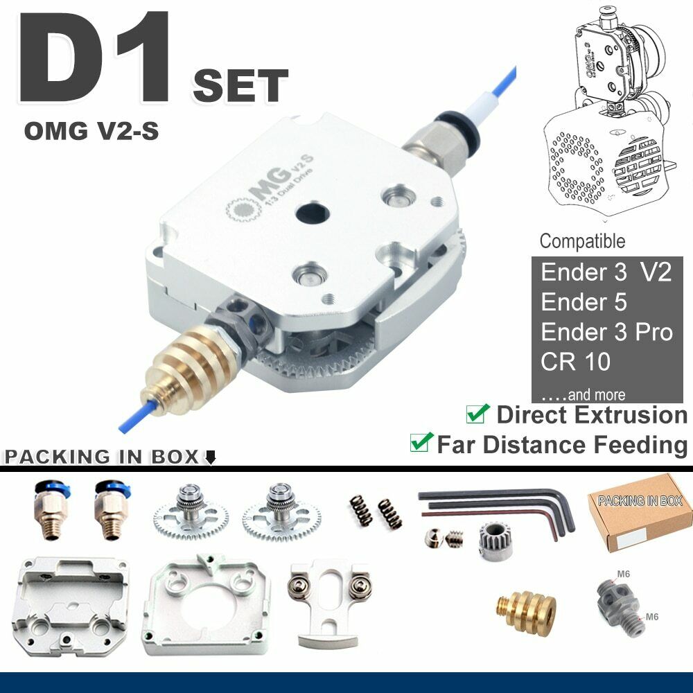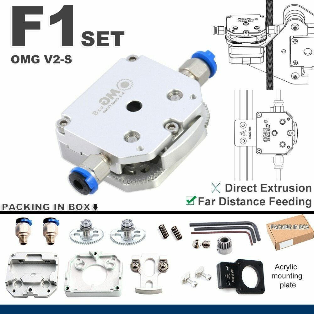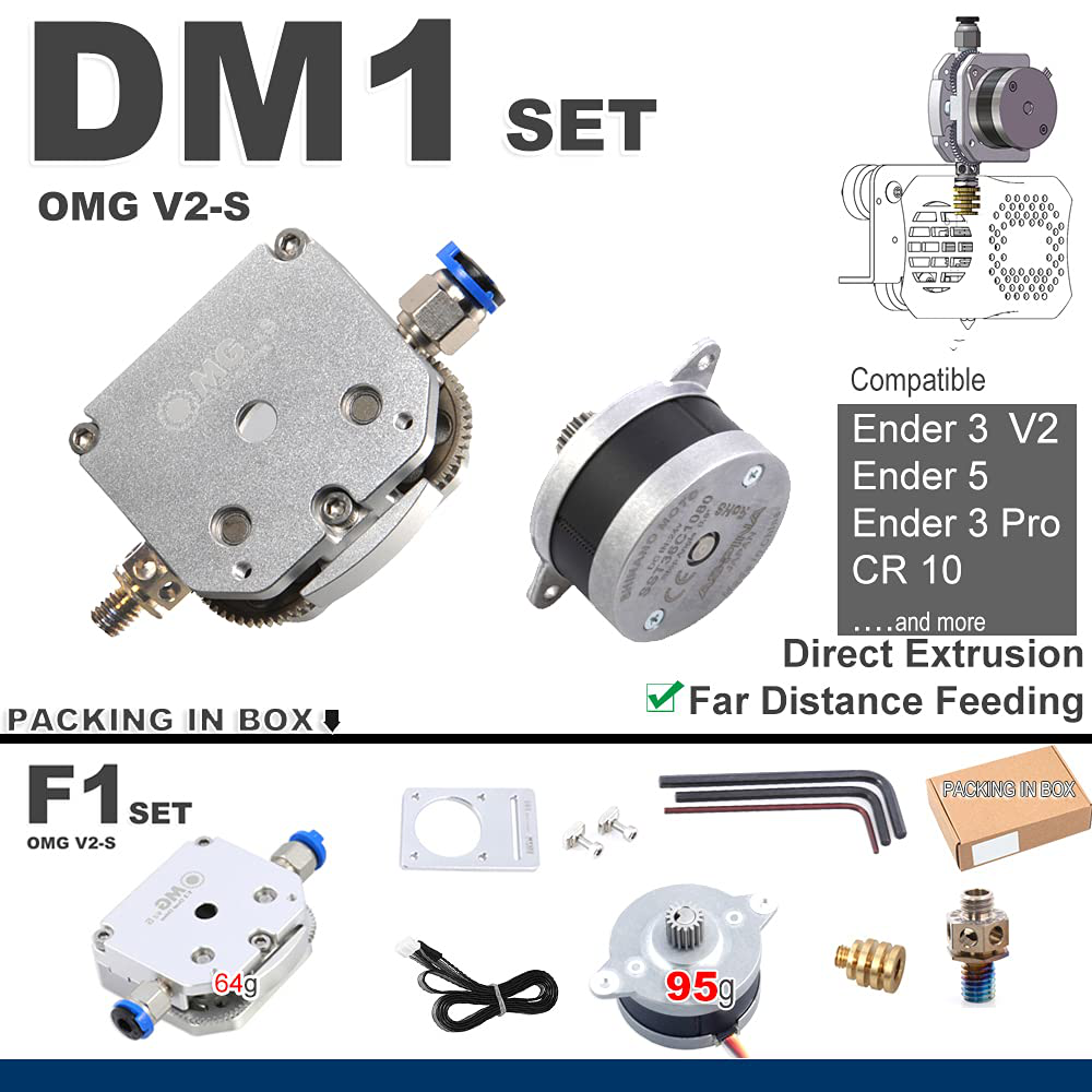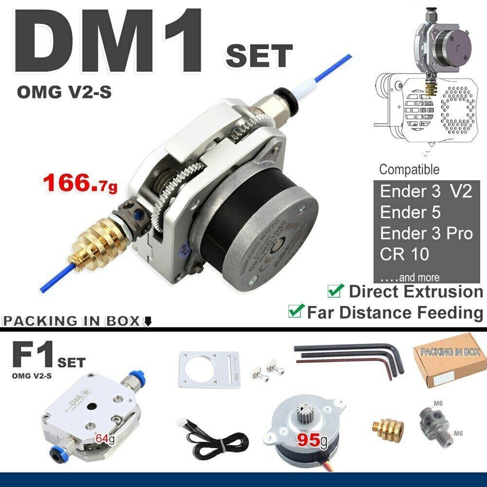 Kan utvides til bl-a. DM1 SET eller de andre settene nevnt ovenfor. DM-1 set til f.eks CR-6 SE DIV Creality ENDER Adaptere og hotend kan tilpasses eller kjøpes til, kan få med etpar ting inkl. Betalte 2900 for 2 med nødvendige tilkoblinger som dyse heatbreak, for 2 ulike printere. (Kan og brukes som F1 SET TIL FLSUN SR f.eks når en bruker Nema 17 motor som er fra før.)