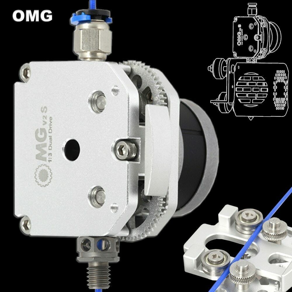 OMG V2S EXTRUDER SETT Metall sølvfarget med Nema motoren med