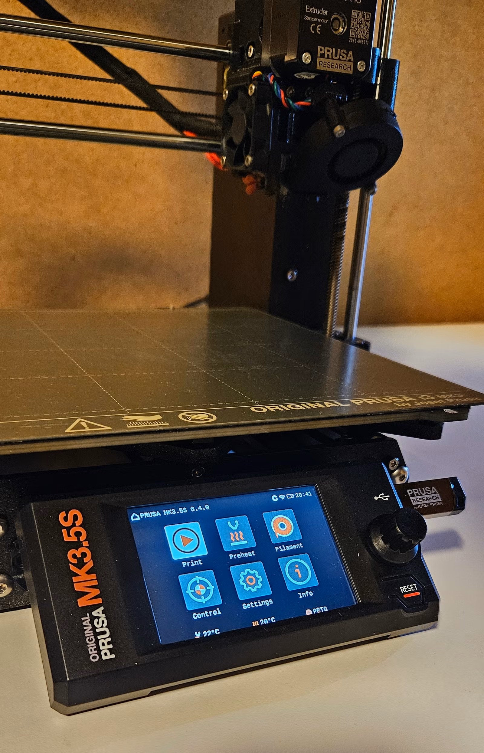 Noe brukt Original Prusa i3 MK3.5S+, som er en oppgradert versjon av MK3S+.