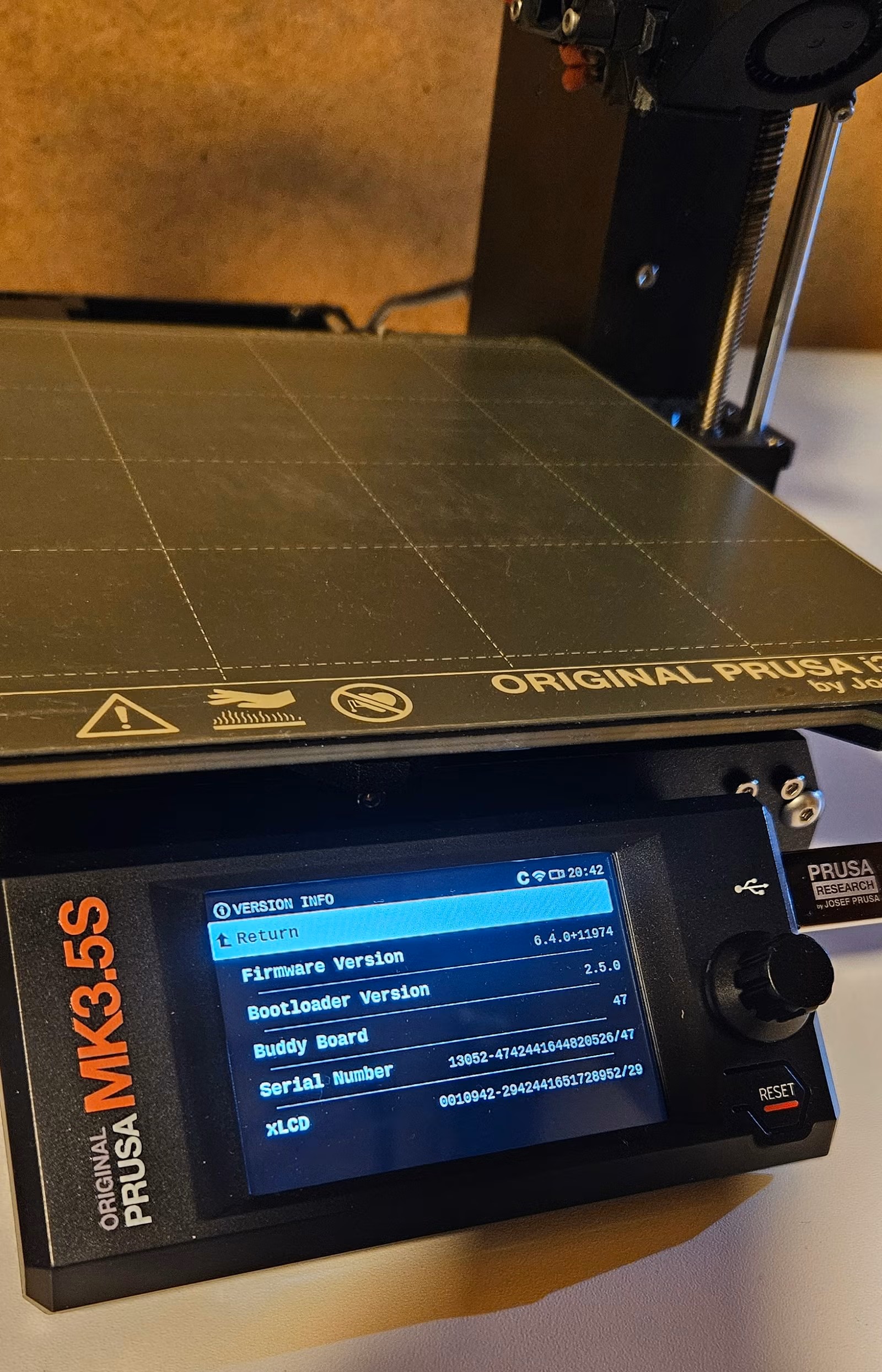 Printeren er oppgradert med originalt MK3.5S-oppgraderingskit kjøpt direkte fra Prusa.