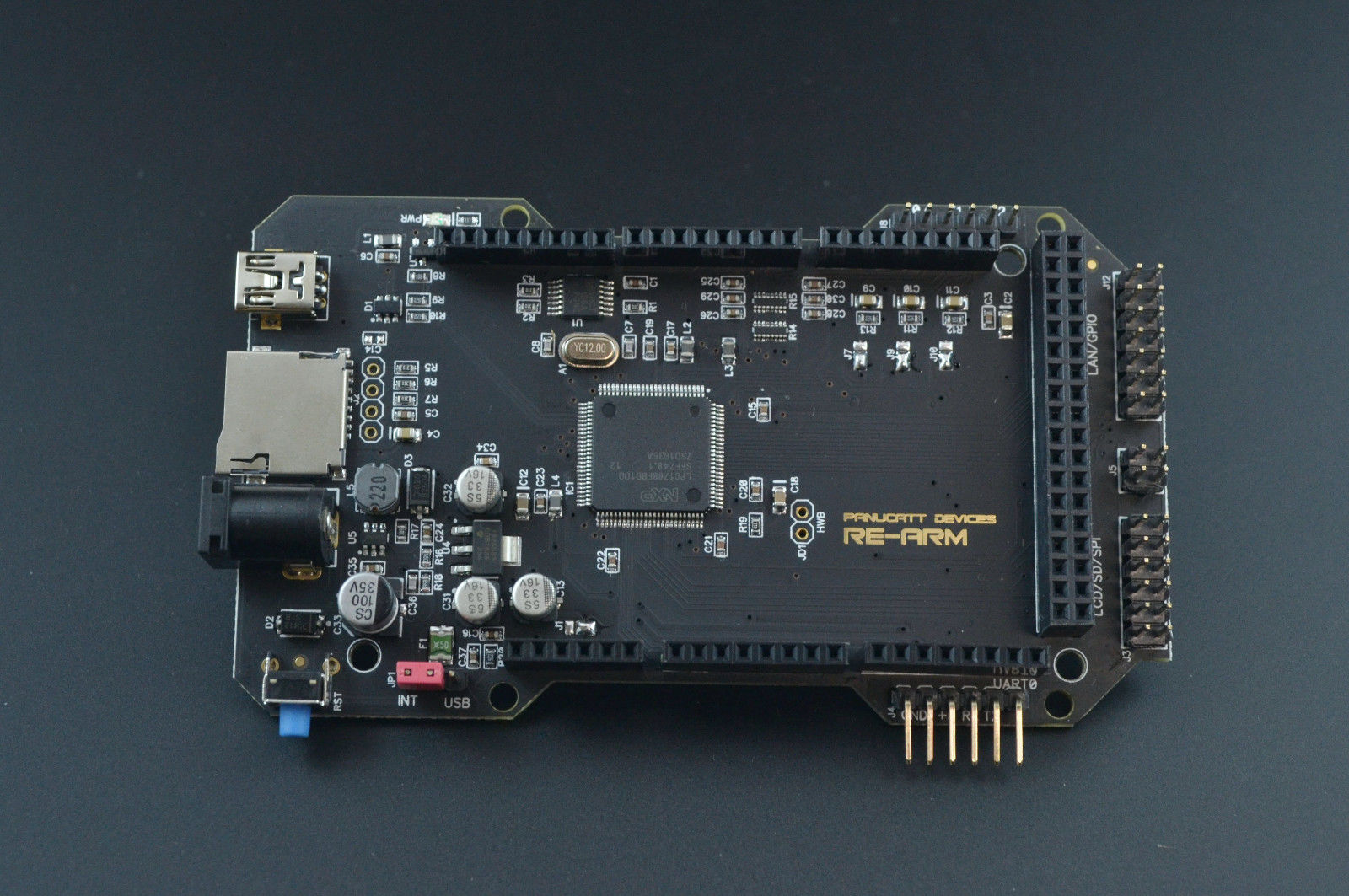RE-ARM is a 100Mhz, 32-bit ARM controller with the popular Arduino MEGA footprint. It’s a plug-in replacement for the Arduino Mega in your RAMPS setup for a quick and easy upgrade to 32-bit goodness.It runs the awesome Smoothieware firmware by Arthur Wolf.