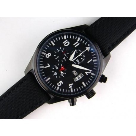 Movement : Japanese quartz movement Full functional chronograph Japanese quartz movement Full functional chronograph ●Dial : black dail ●Case diameter : 42mm ●Case thickness : 16mm ●Case Material : Brushed solid 316L stainless steel with black PVD coated ●30m water resistance ● Function: Pusher button at 2:00 Starts/stops chronograph Pusher button at 4:00 resets chronograph Running Second at:6:00 o´clock Chronograph minute at 12:00 o´clock Chronograph hour at 9:00 o´clock ●W ide of Strap : 21mm m ixed strap of the cloth and leather ●Glass : special scratch proof mineral glass ● Clasp type : Pin buckle