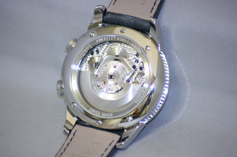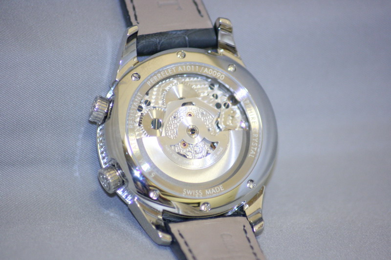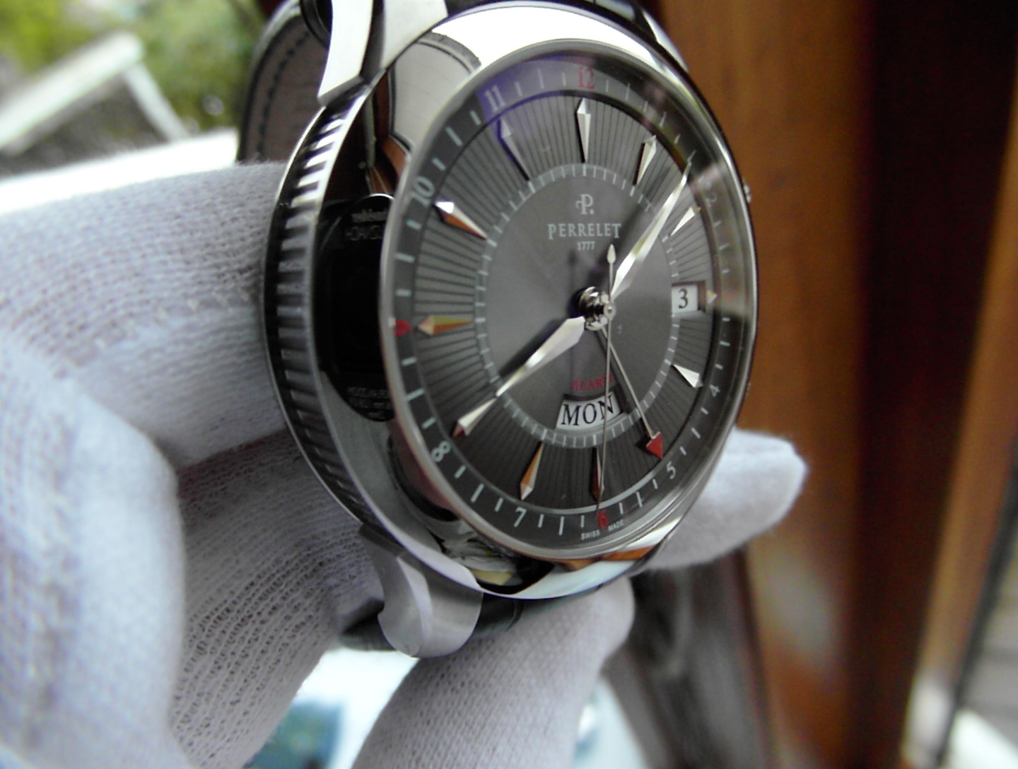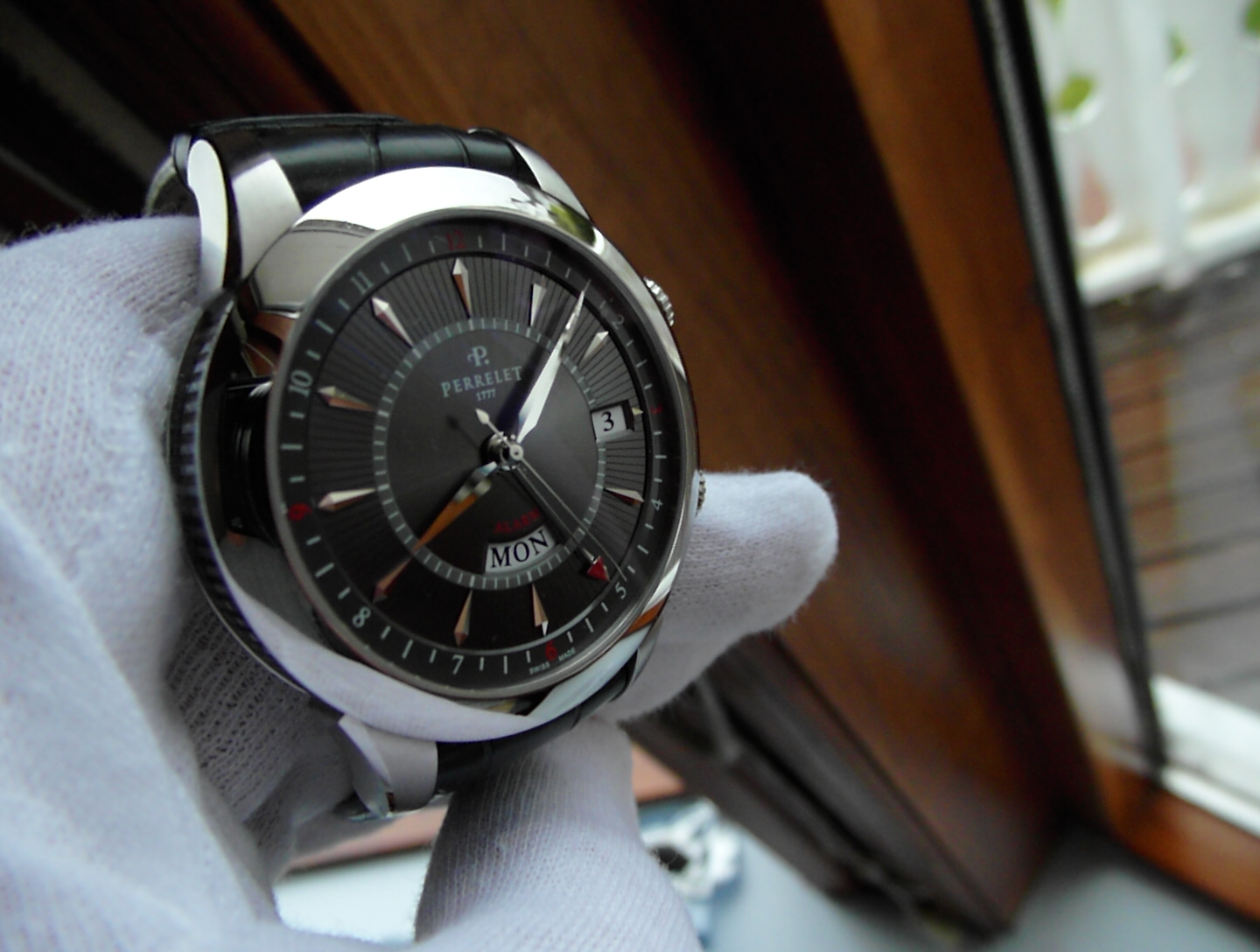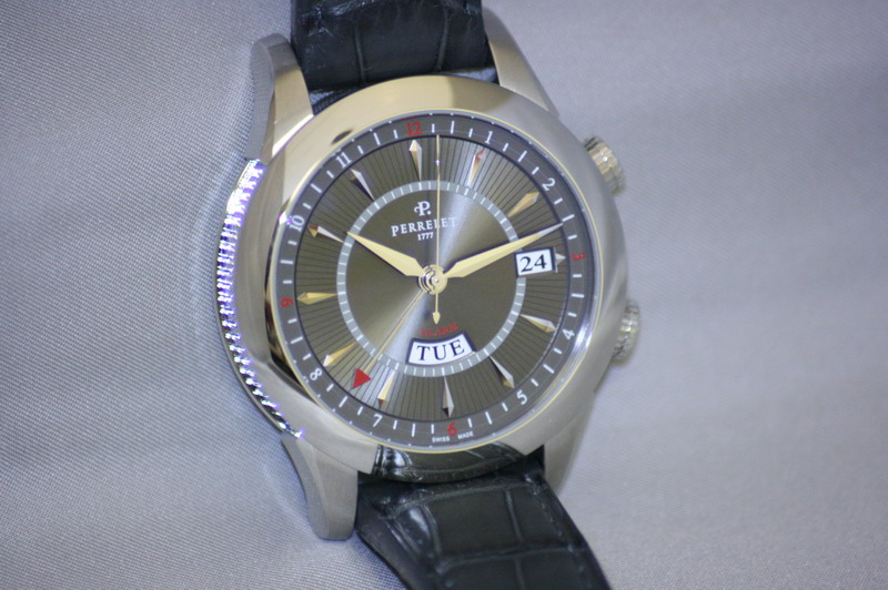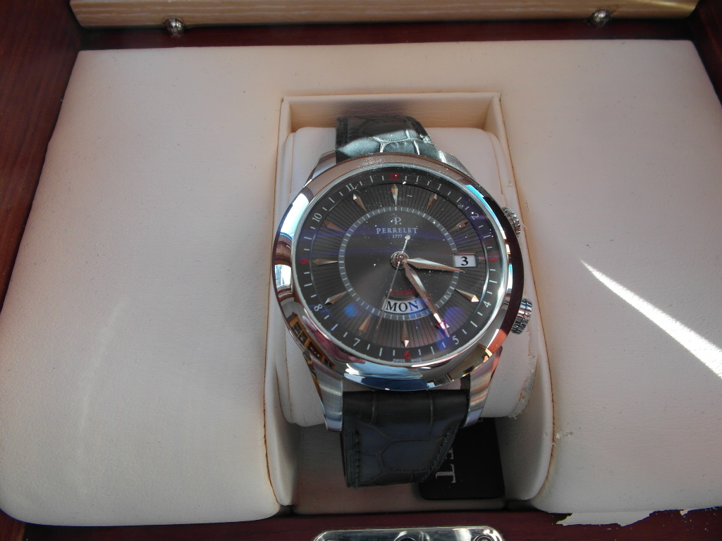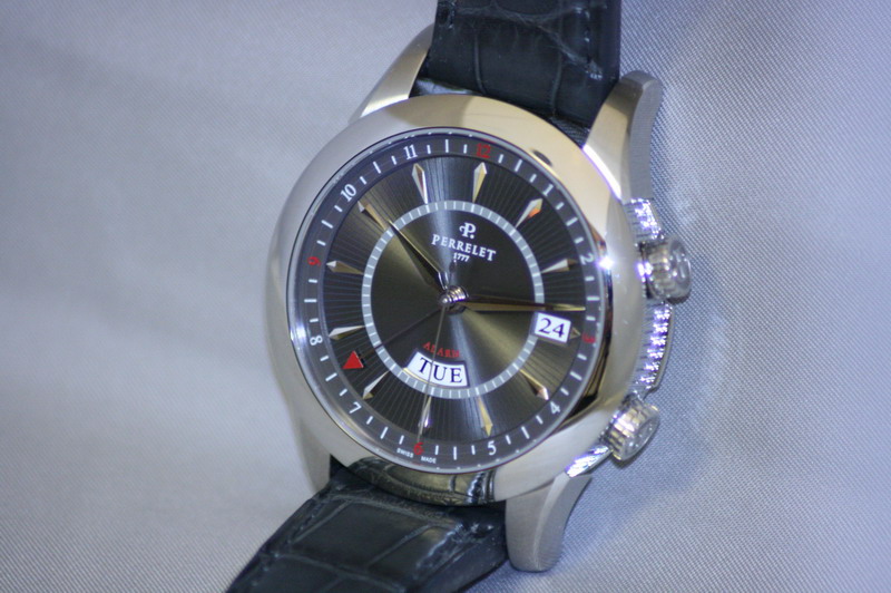 Modell A1011/A med grå krokodille skinn reim. Grå urskive. Alarm. Dag og Dato. Mekanisk automatisk urverk. Vanntett til 50m. Safir crystal glass. Den er aldri brukt. Hatt denne i 14år. Så å si alle ble solgt til usa da det var der markedet var og er fortsatt. Meget flott og klassisk modell. Nypriser var mellom 40000-50000 på denne. List price: $6700.00