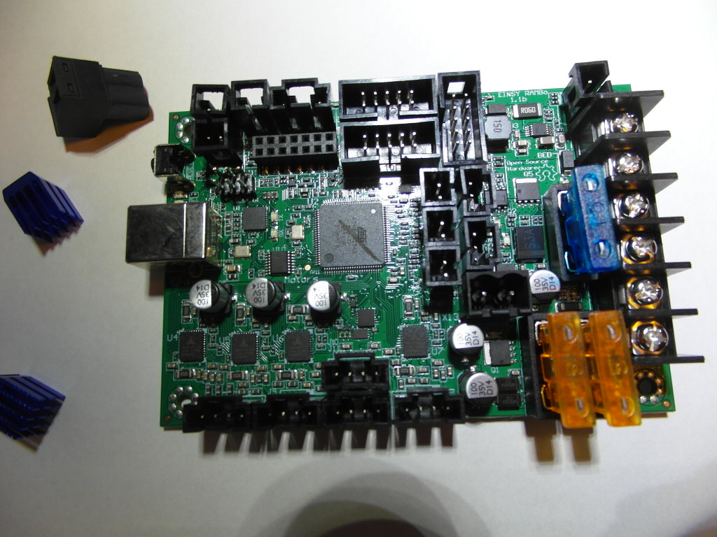 EinsyRambo v1.1b for 24v. med terminalkontakt og kjølebrikker.