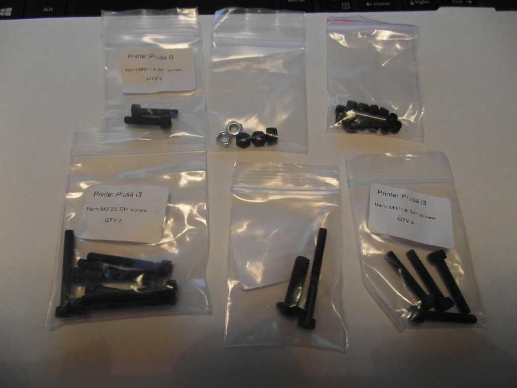 M5x16 screw M3x30 screw M3x25 screw M3x18 screw M3x14 screw M3 square nut M3 hex nuts M3 hex nylock nut M3 washer , 0.5mm thick Dowel pin, 2.95mm diameter, 15.8mm length M4x5mm set screw