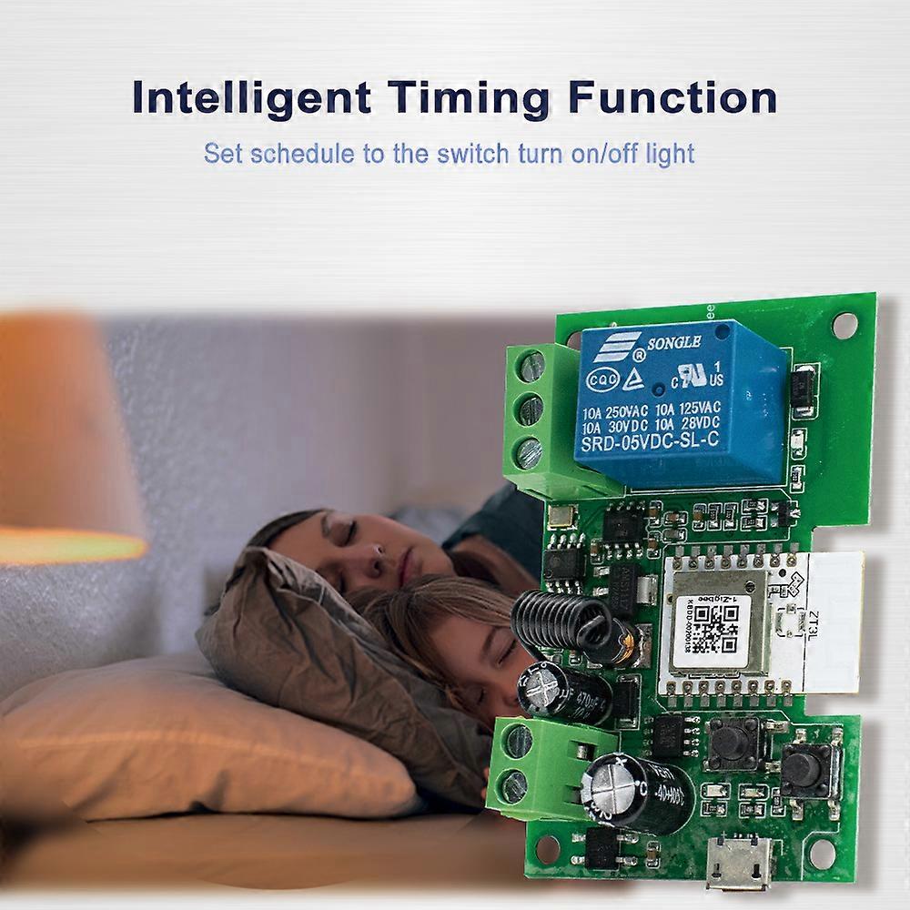 This product is a 1 channels universal WiFi wireless smart switch with RF 433MHz module, for your smart home system to remotely and automatically turn on/off home appliances and electronic devices by phone APP. It also can be controlled by RF remote controller indoors. It can connect and control four appliances on APP at the same time, and you can independently turn on/off each of the four gangs. It also supports timing turning on/off the appliances at a specified time, and share to others so that you can control your smart home together with your family. You can also voice control your home appliances by Amazon Alexa, and for Google Home/Nest, and enjoy intelligent life and make your home smarter.