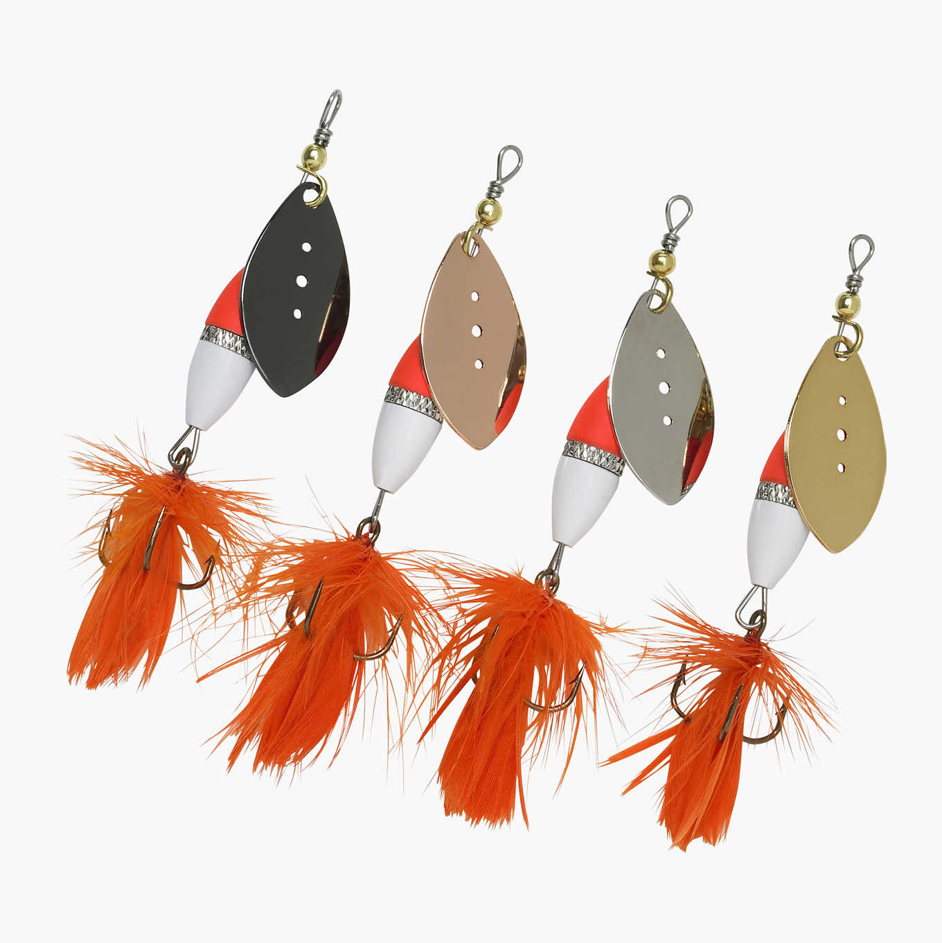 Velegnet for spinnfiske etter gjedde, gjørs, ørret og abbor i ferskvann, elv og kyst. Etterligner småfisk i sin utførelse og opptreden i vannet. Av forniklet messing. Rustfrie kroker.