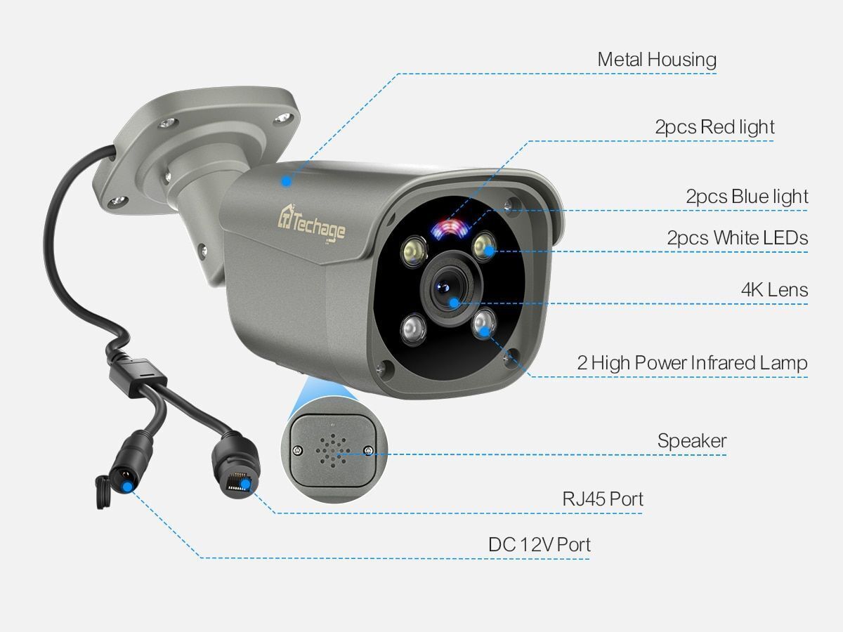 Techage Face Detected POE Camera Colorful Night 8MP CCTV Video 4 Techage cameras kit