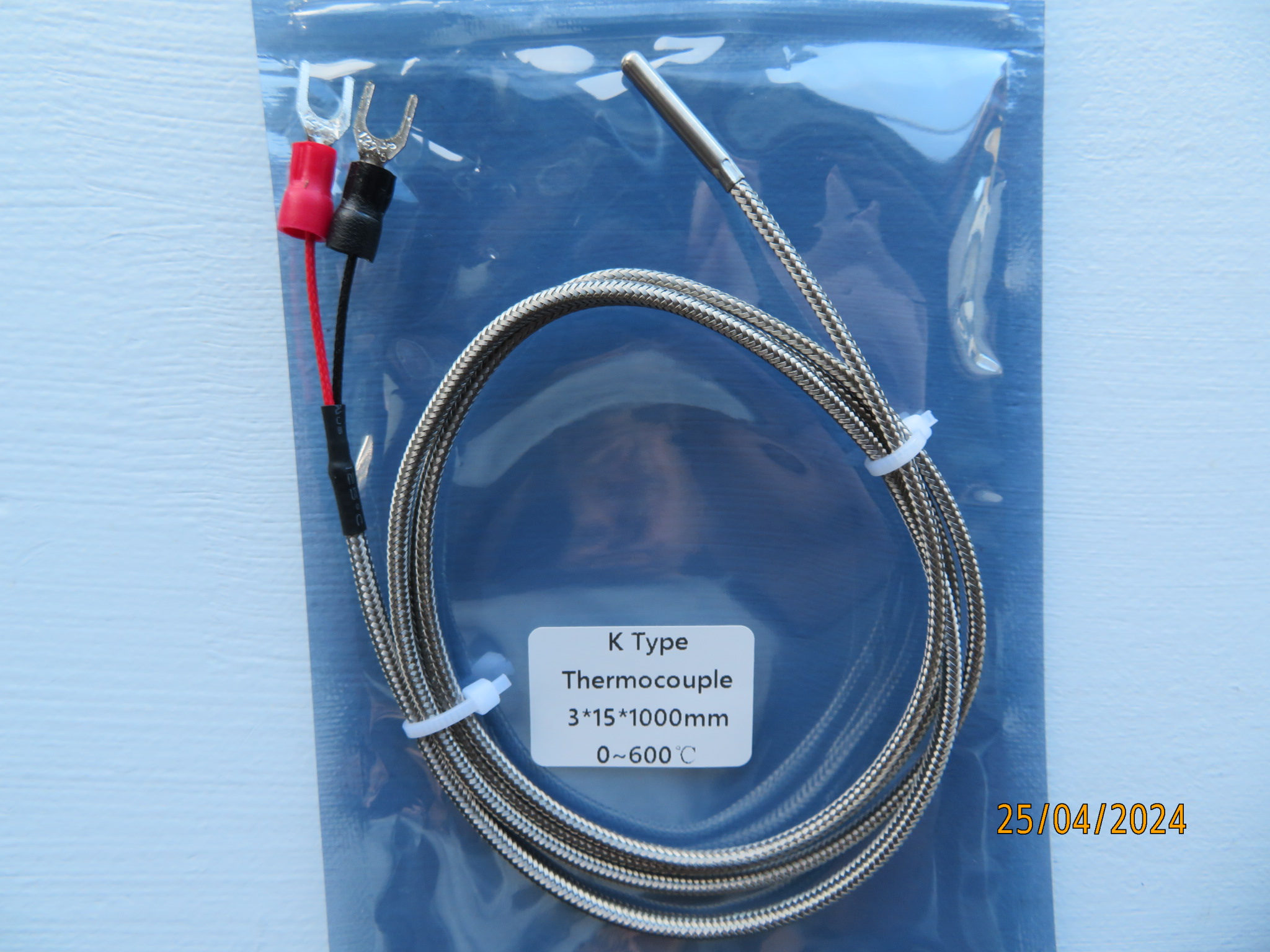 Temperatur sensor, 0-600 grader 1m 3x15mm 2 spade kontakter i andre enden