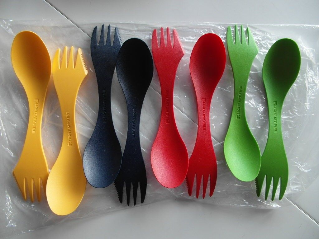 Turkniv Bestikk Light my fire Blå Grønn Gul Rød. Pris pr. 4 stk ulike. Dette er kniv skje og gaffel i ett. Kan vaskes i maskin. Lengde: ca 17cm.