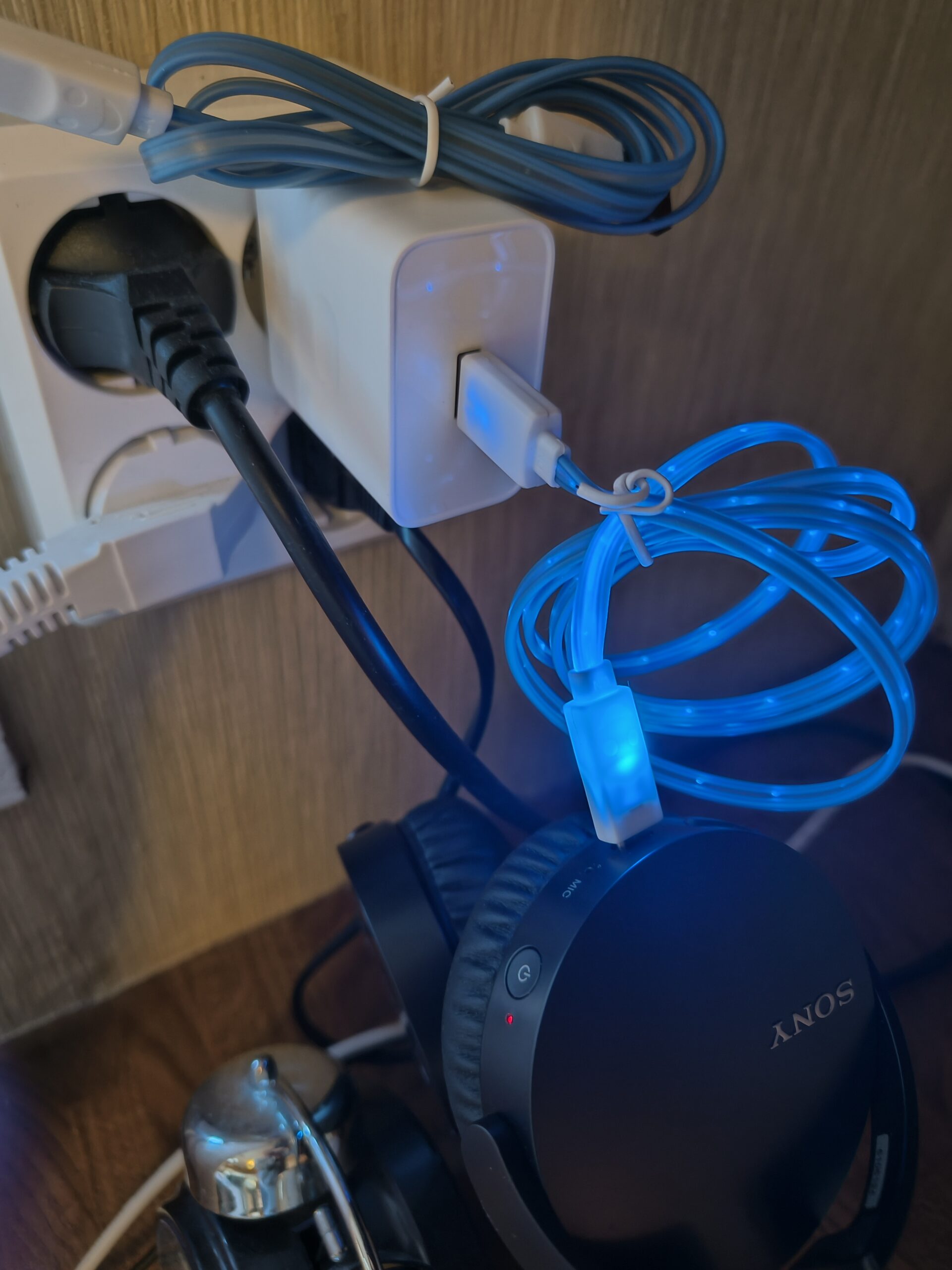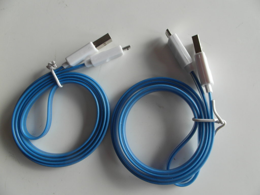 USB 2.0 farge på kabel er blå med innebygd LED belysning over hele, 1 meter, som på bildet Pris pr stk