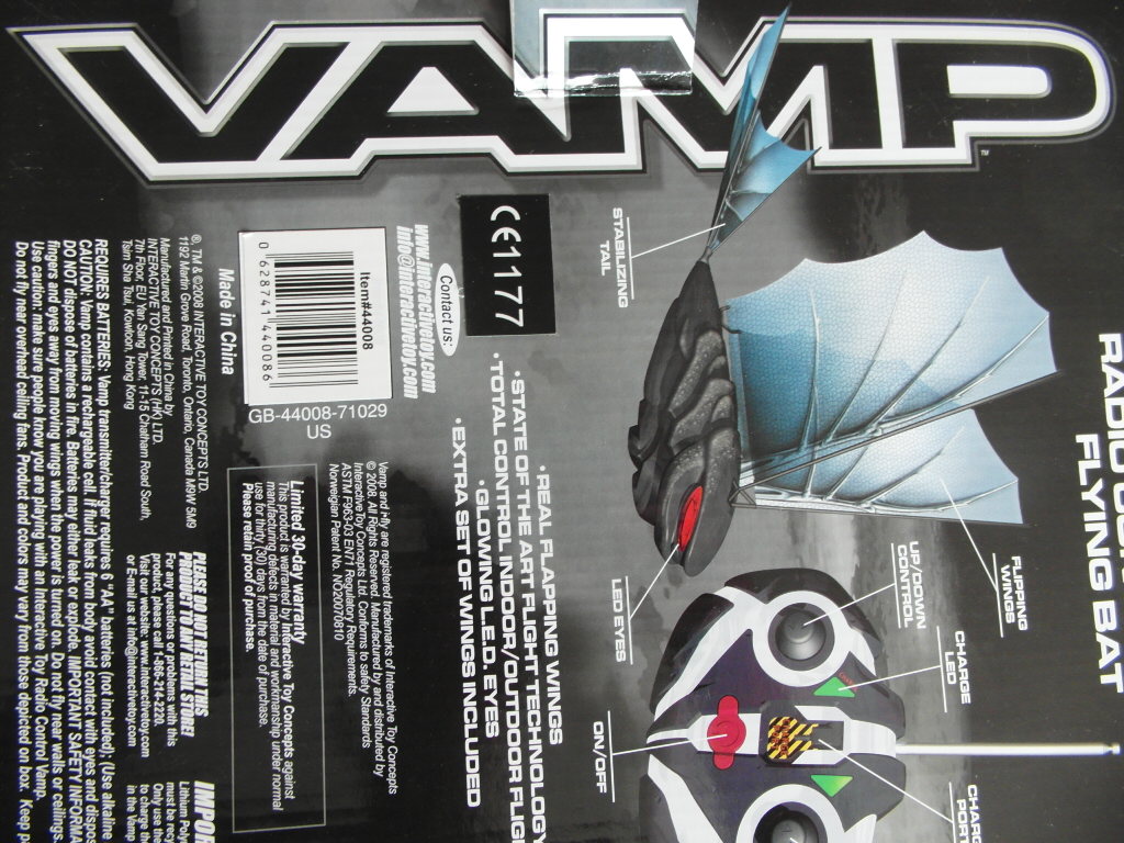 Fjernstyrt Flying Bat fra ITC Flygende flaggermus med fjernkontroll Røde glødende øyne som lyser i mørket, styres som ett helikopter med medfølgende kontroll. denne er den med røde vinger og røde øyne.
