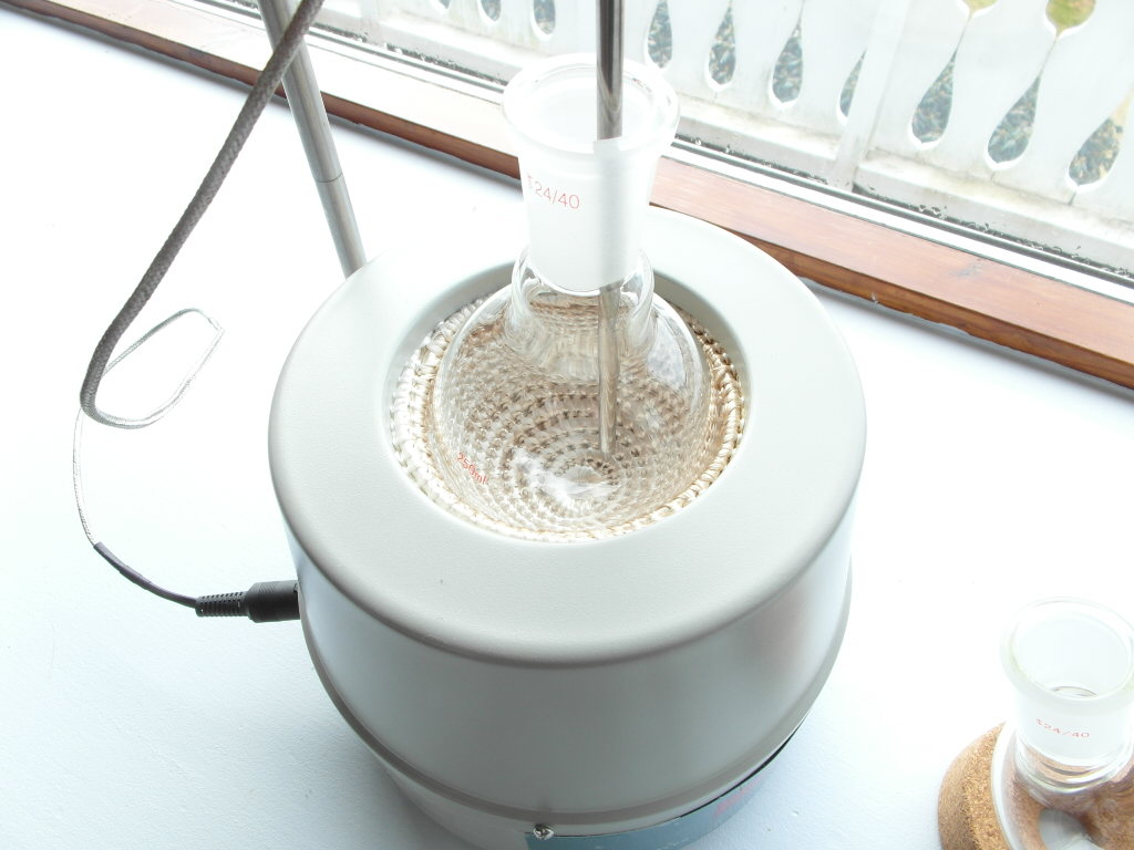 250mL heating mantle med stativ, med 1 stk 250ml rundkolbe