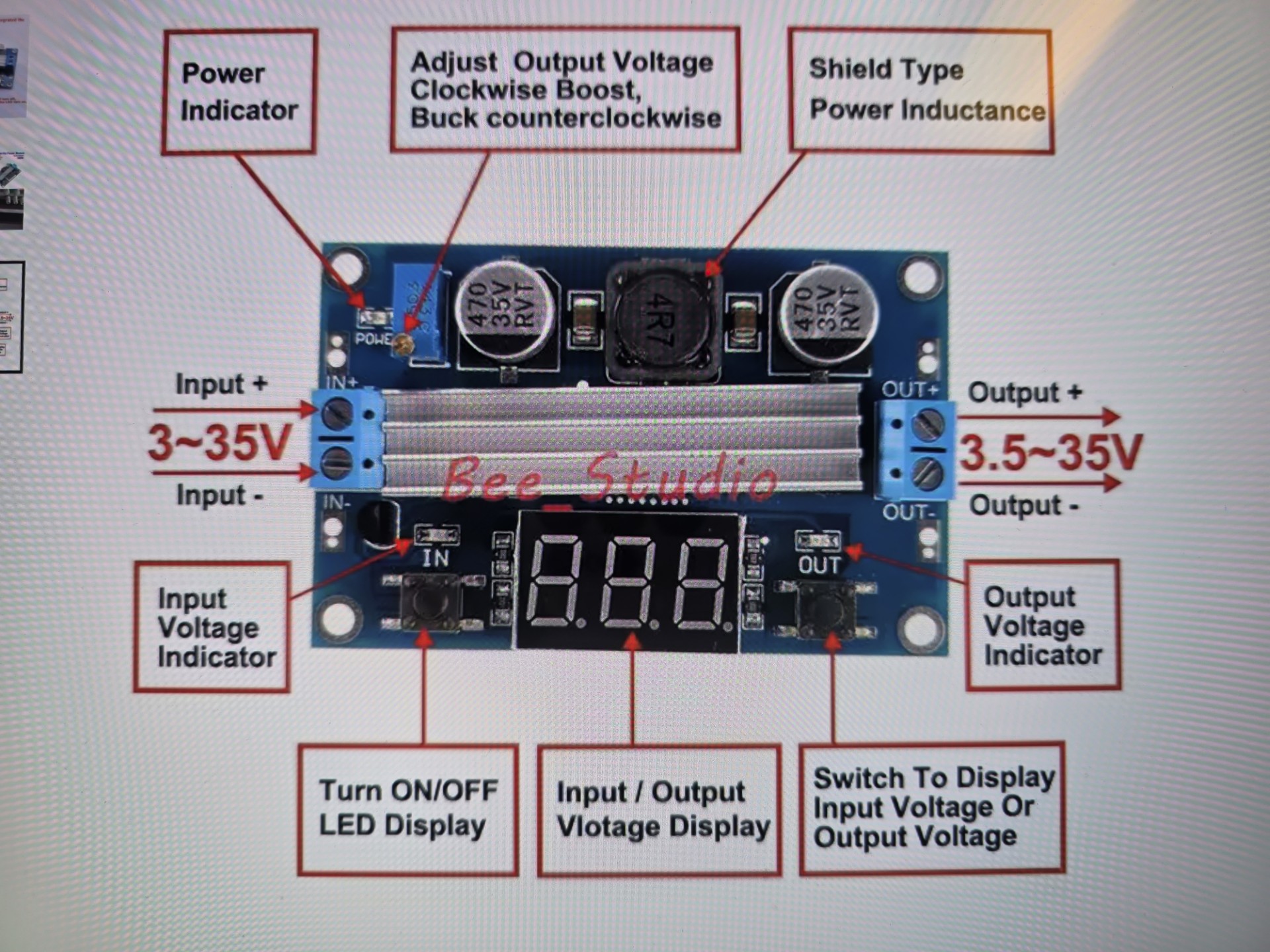 3.output voltage range:3.5~35VDC(please to ensure that output voltage above on input voltage)