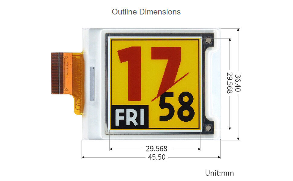 1.64inch Square E-Paper (G) Raw Display, 168 × 168, Red/Yellow/Black/White